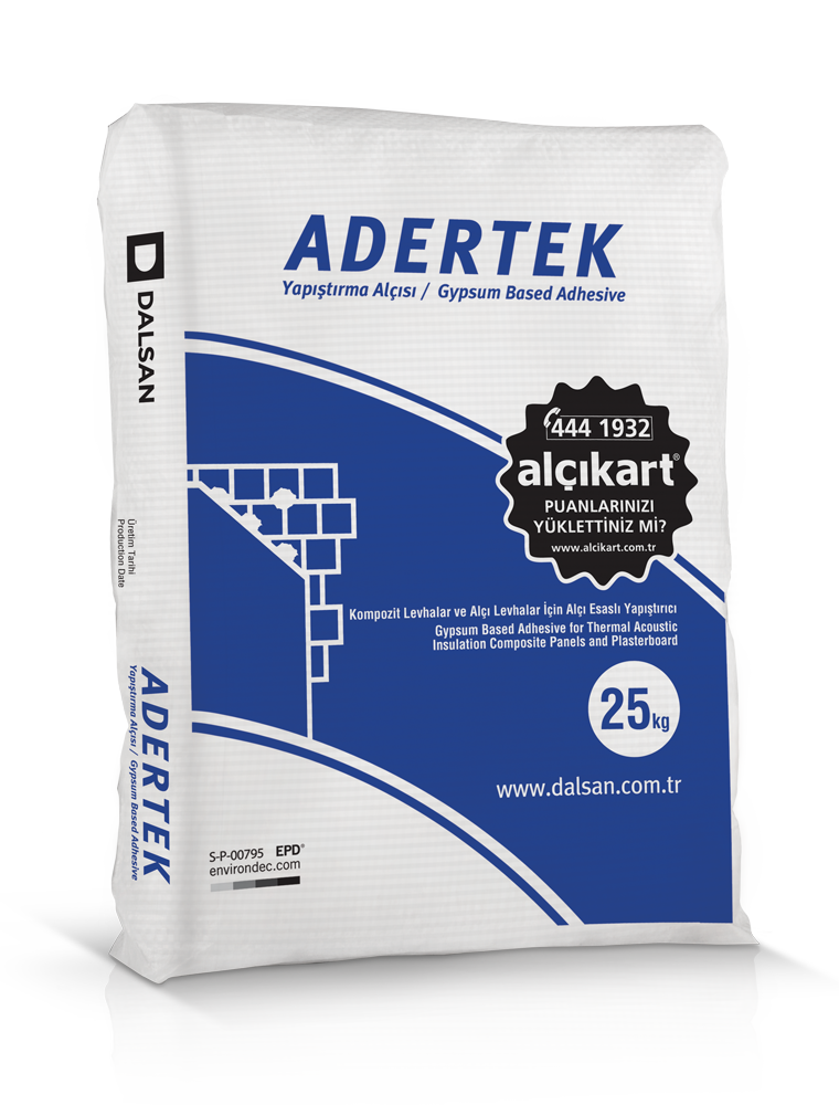 ADERTEK, COREX, EPS (genleştirilmiş polistren), XPS( haddelenmiş polistren), mineral yünler (camyünü, taşyünü) ve yalıtımlı kompozit panelleri; tuğla, beton, brüt beton, gazbeton, bimsblok vb. yüzeylere yapıştırmada kullanılan yapı alçısıdır.