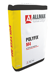 25 kg Polyfix M4, Isı Yalıtım Levha Yapıştırma Harcı, yaklaşık 5,5-6,5 litre su dolu bir kap içine boşaltılarak, topaksız bir karışım elde edilinceye kadar, düşük devirli bir karıştırıcı veya mala ile karıştırılır.